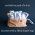 The langots are available in packs of 6 or 10, and each pack includes a FREE diaper bag.